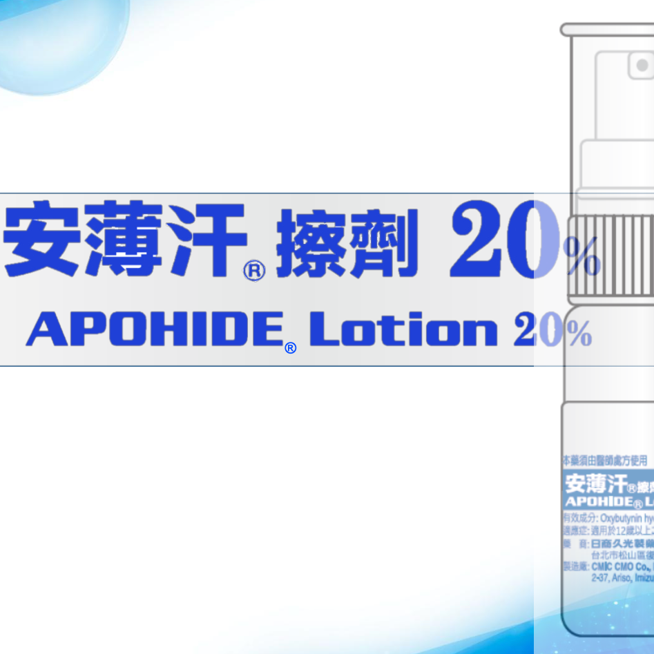 新增產品,手汗外用安薄汗apohide每晚塗抹,5成患者4週內改善5成以上