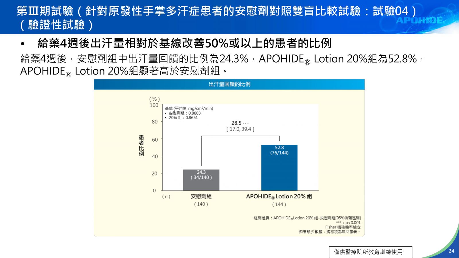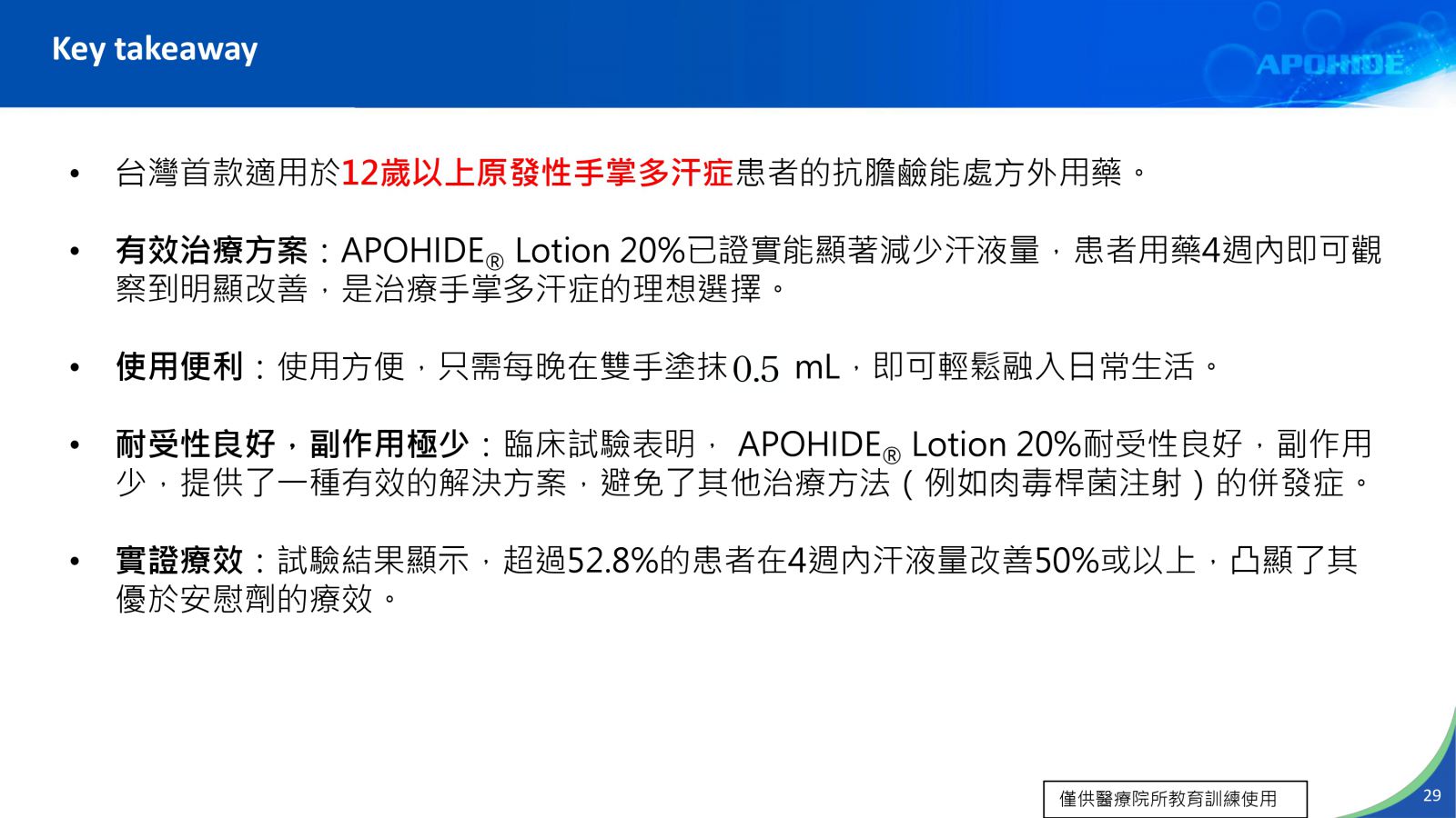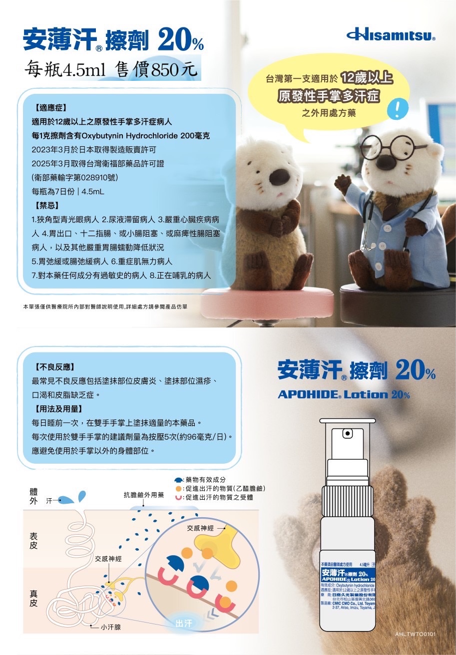 [手汗外用] 安薄汗apohide每晚塗抹,5成患者4週內改善5成以上